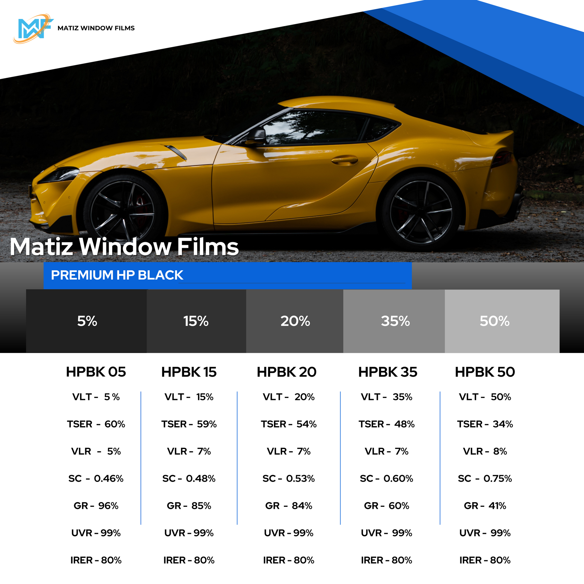 Our HP Charcoal Black window film is a professional-grade hybrid product that offers maximum heat rejection and aesthetic appeal.